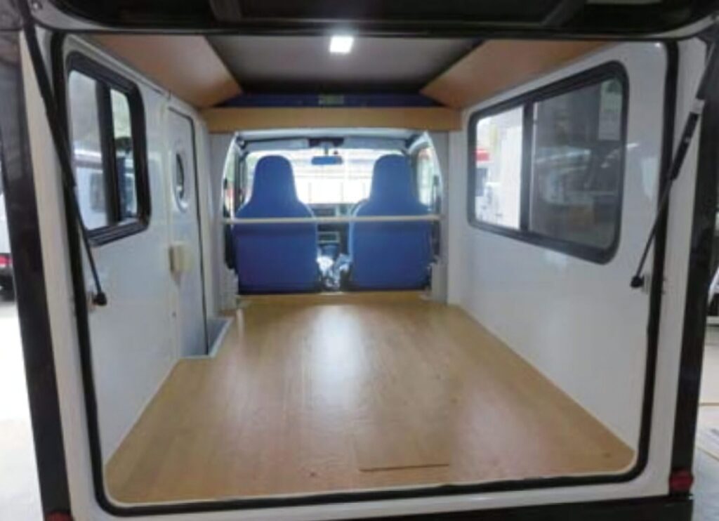スズキ「エブリイ」やダイハツ「アトレー」、ホンダ「N-VAN」といった軽バンや軽ワゴンの内装を中心に架装したタイプ。