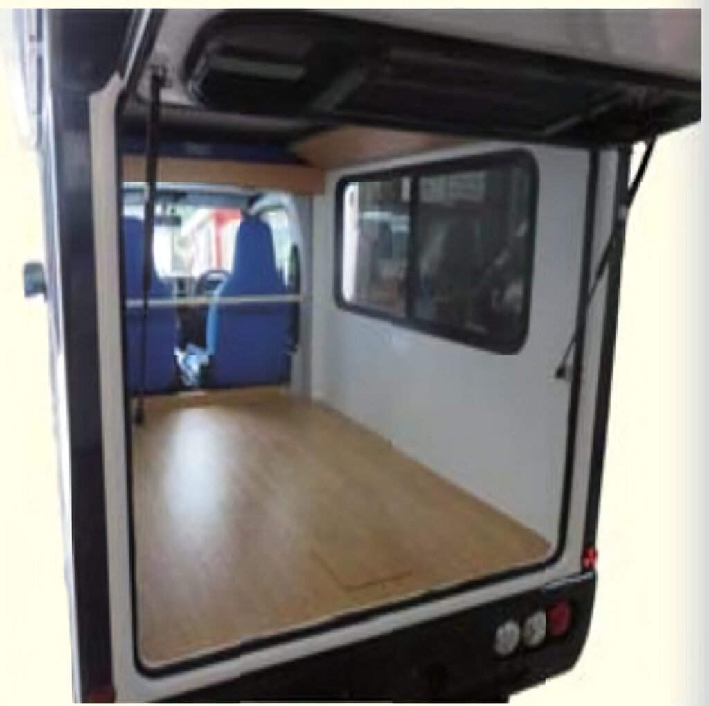 もう一つは、後部に荷物の積み下ろしが容易な大きな扉を備え、広大な積載スペースを確保した2名定員の貨物登録仕様、通称「トランスポーター」です。
