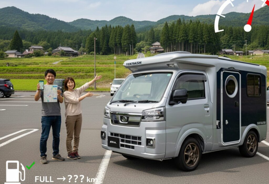 キャンピングカーでの長旅において、航続距離、すなわちガソリン満タンの状態でどれくらいの距離を走り続けられるのかは、給油計画を立てる上で極めて重要な指標となります。